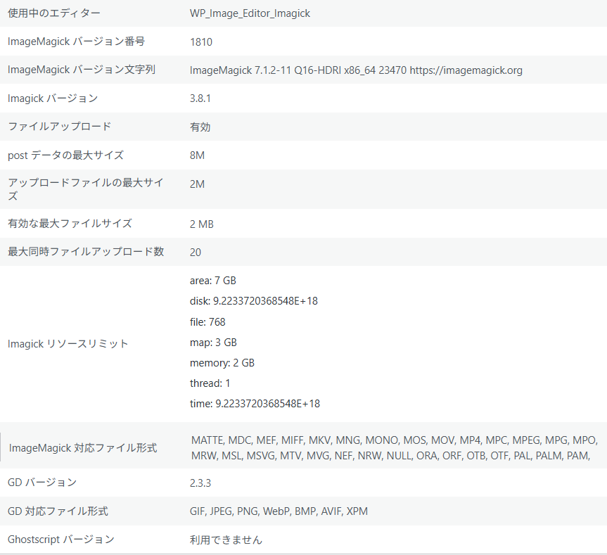 なんか調べてみると、gdもimagemagickも入ってませんでした。